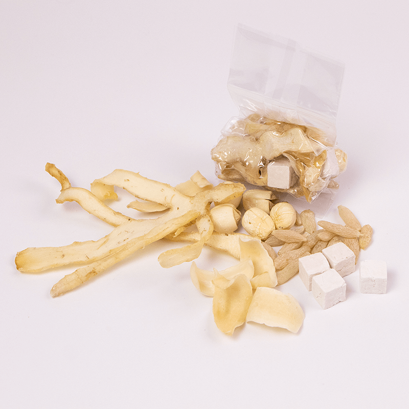 Sichuan Ophiopogon 6g, Fujian Lotus 6g, Hunan Lily 6g, Hunan Polygonatum 6g, Hunan Poria 6g