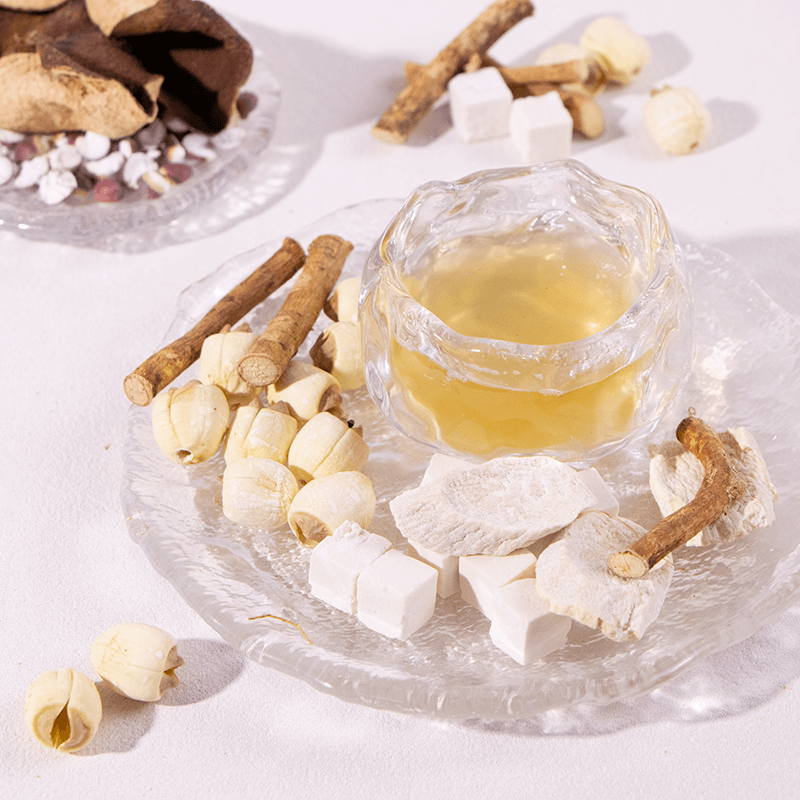 - • Dampness Elimination: Poria + Morinda reduce TNF-α → 82% bloating relief (Gastroenterology 2024)